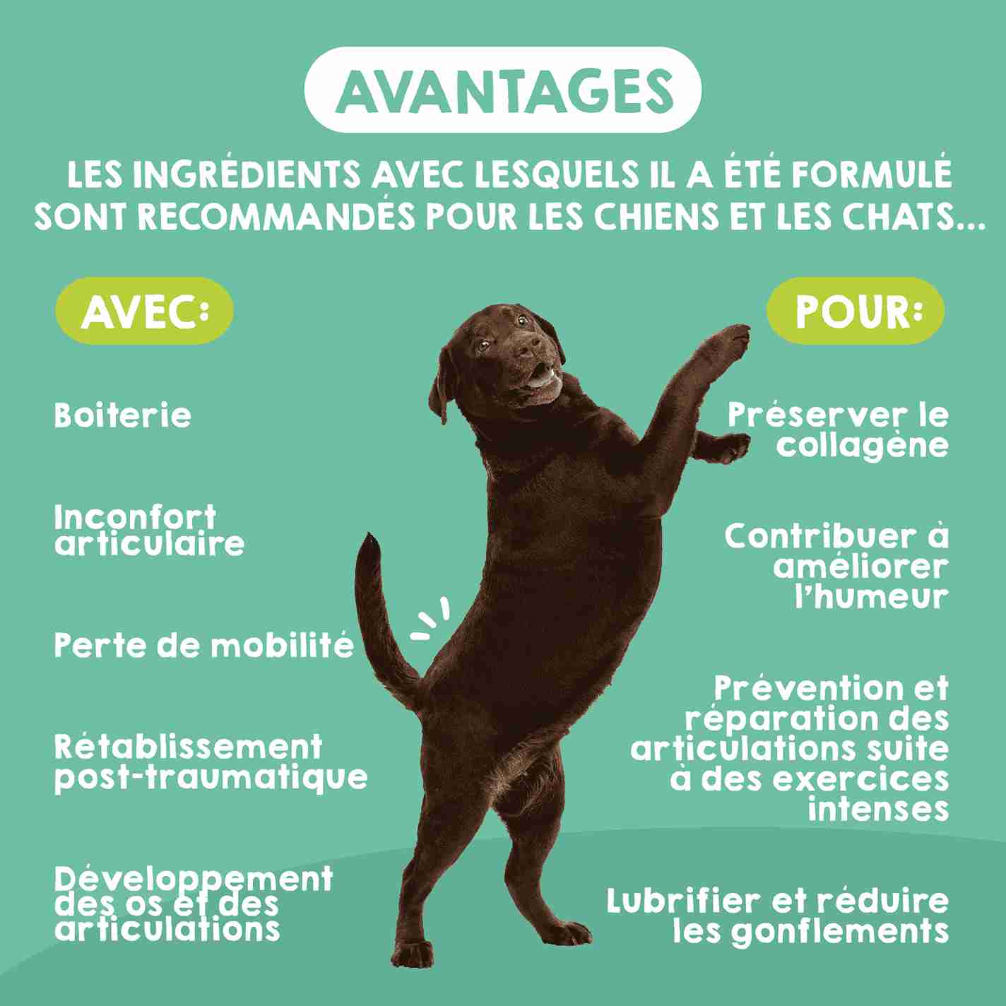 Oui. Cela contribue à réduire l'inflammation et les douleurs articulaires, améliorant la mobilité même en cas d'arthrose, de dysplasie ou de convalescence post-opératoire.