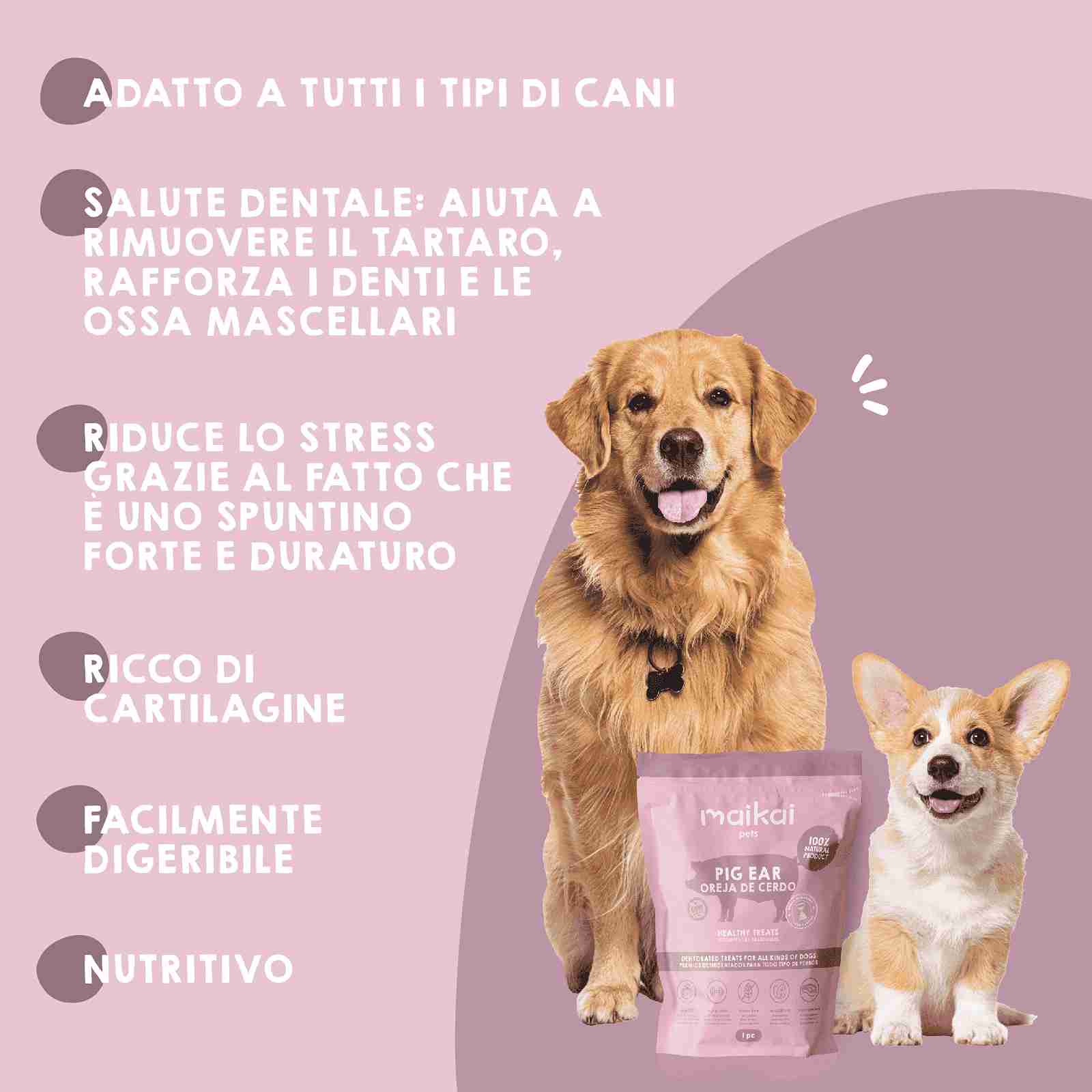 Le orecchie di maiale disidratate sono ricche di collagene e proteine; aiutano a mantenere l’igiene dentale e la salute articolare mentre il tuo cane si diverte a masticare felice per ore 🐶