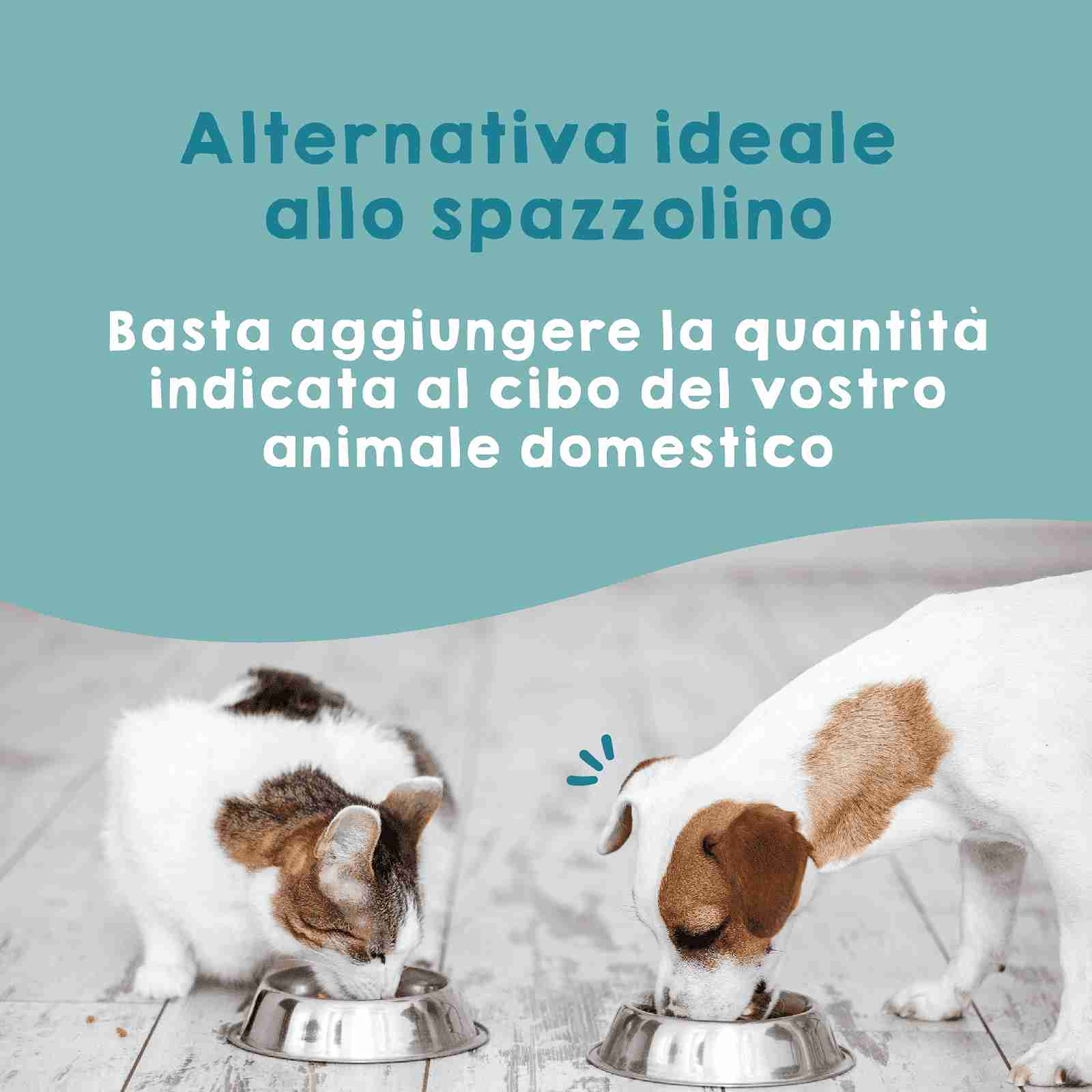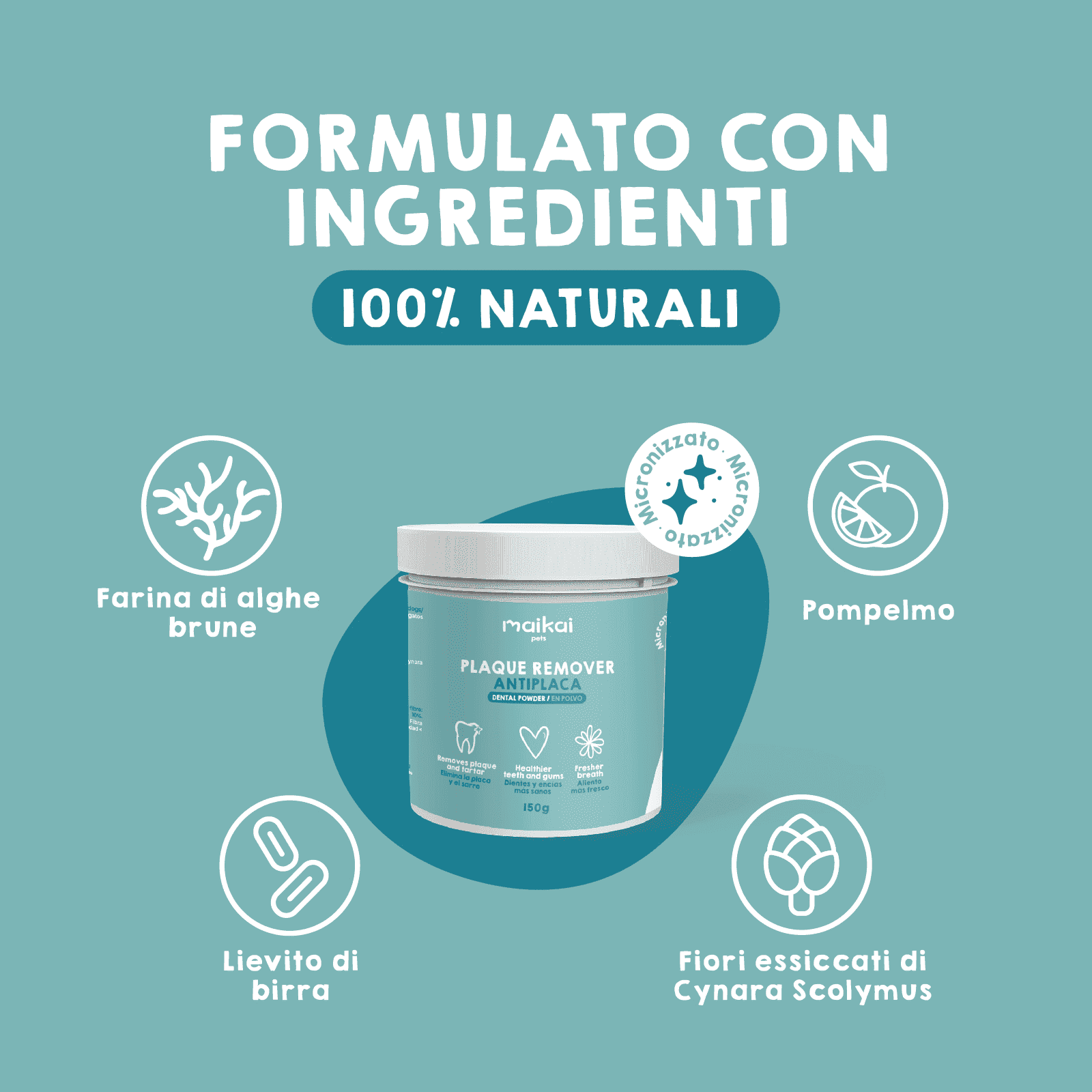 La sua formula 100% naturale con alghe e minerali agisce dall’interno, aiutando a dissolvere il tartaro, eliminare l’alito cattivo e prevenire nuove placche batteriche senza bisogno di spazzolatura.
