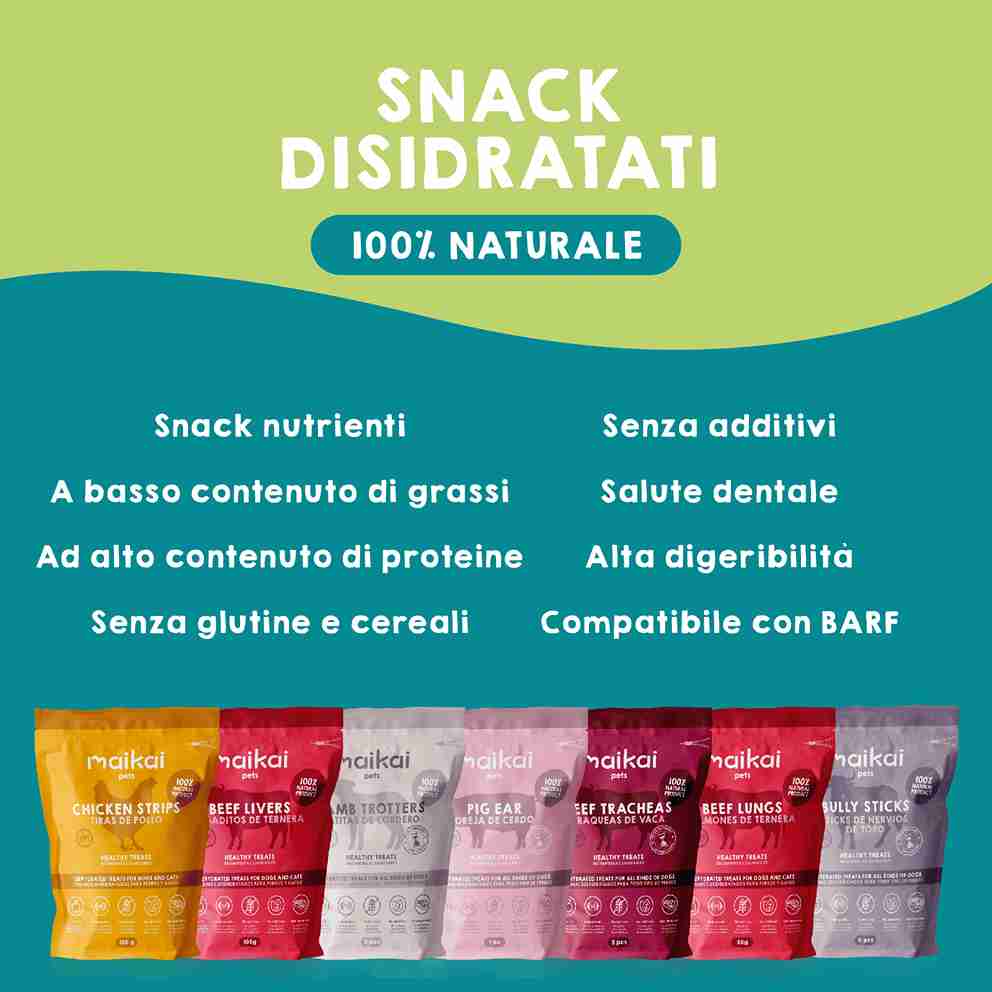 Tutti i prodotti di Maikai Pets sono realizzati con ingredienti 100% naturali e di origine europea, senza additivi, conservanti né coloranti.